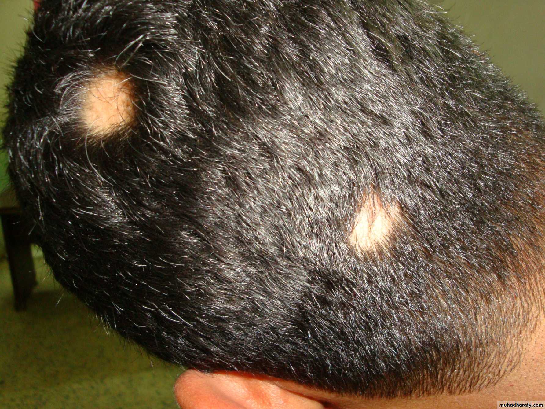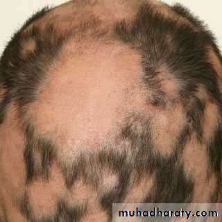 Few patients loss all the scalp hair (alopecia totalis), or from the whole skin surface (alopecia universalis).