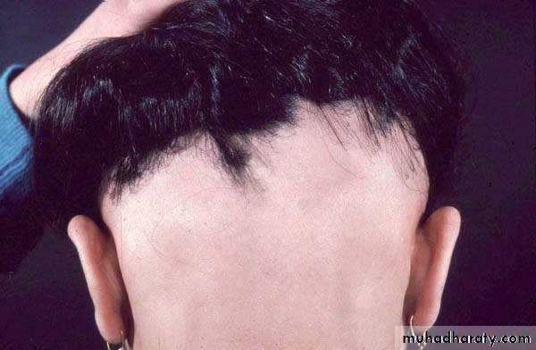 • Involvement of the scalp margin (Ophiasis),especially at the nape of the neck.