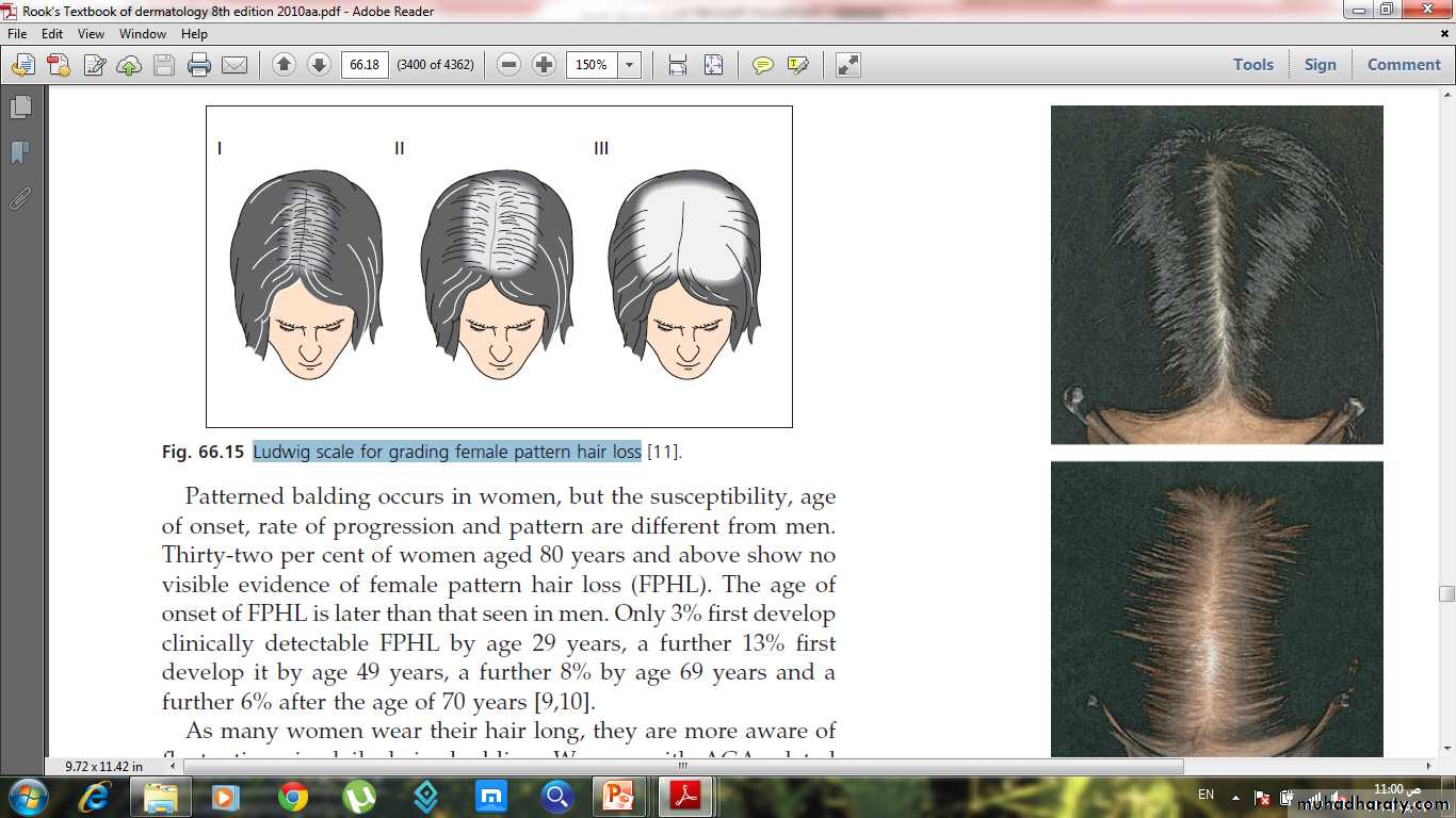 as female pattern baldness begins around thirty,& it gets worse with menopause.