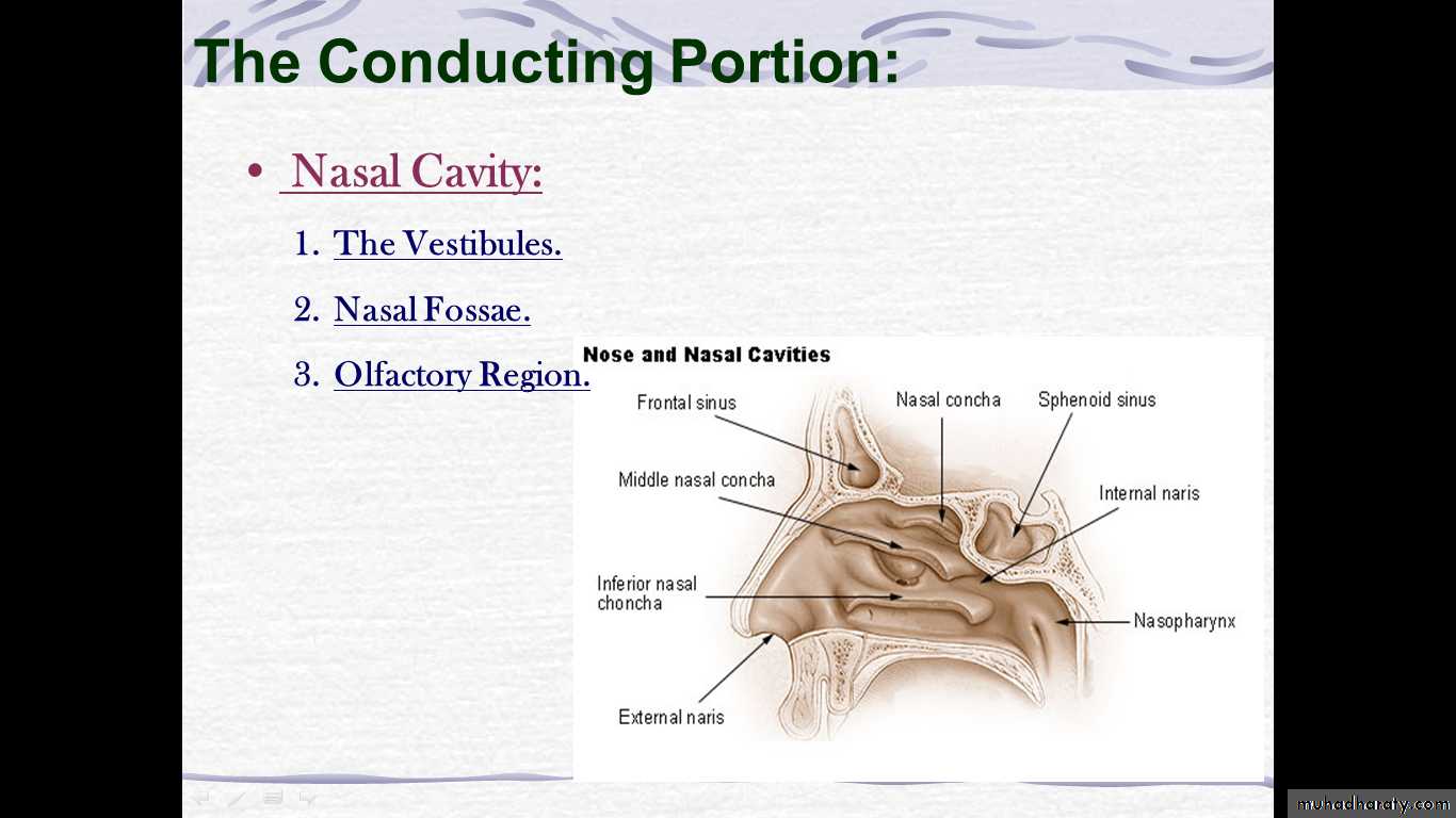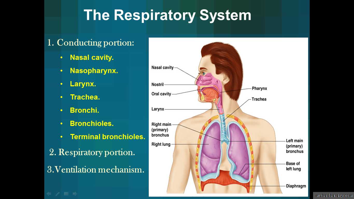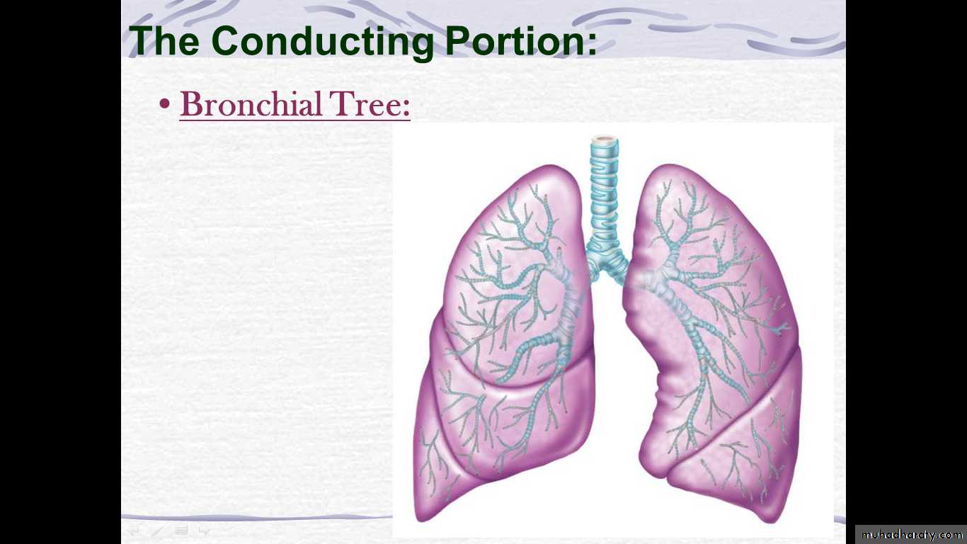 • Conductive portion : conduit & conditioning.• Respiratoy portion: oxygen & co2 exchange