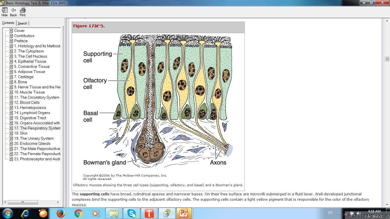 conchaeOlfactory epithelium:roof of nasal cavity & sup. choncha