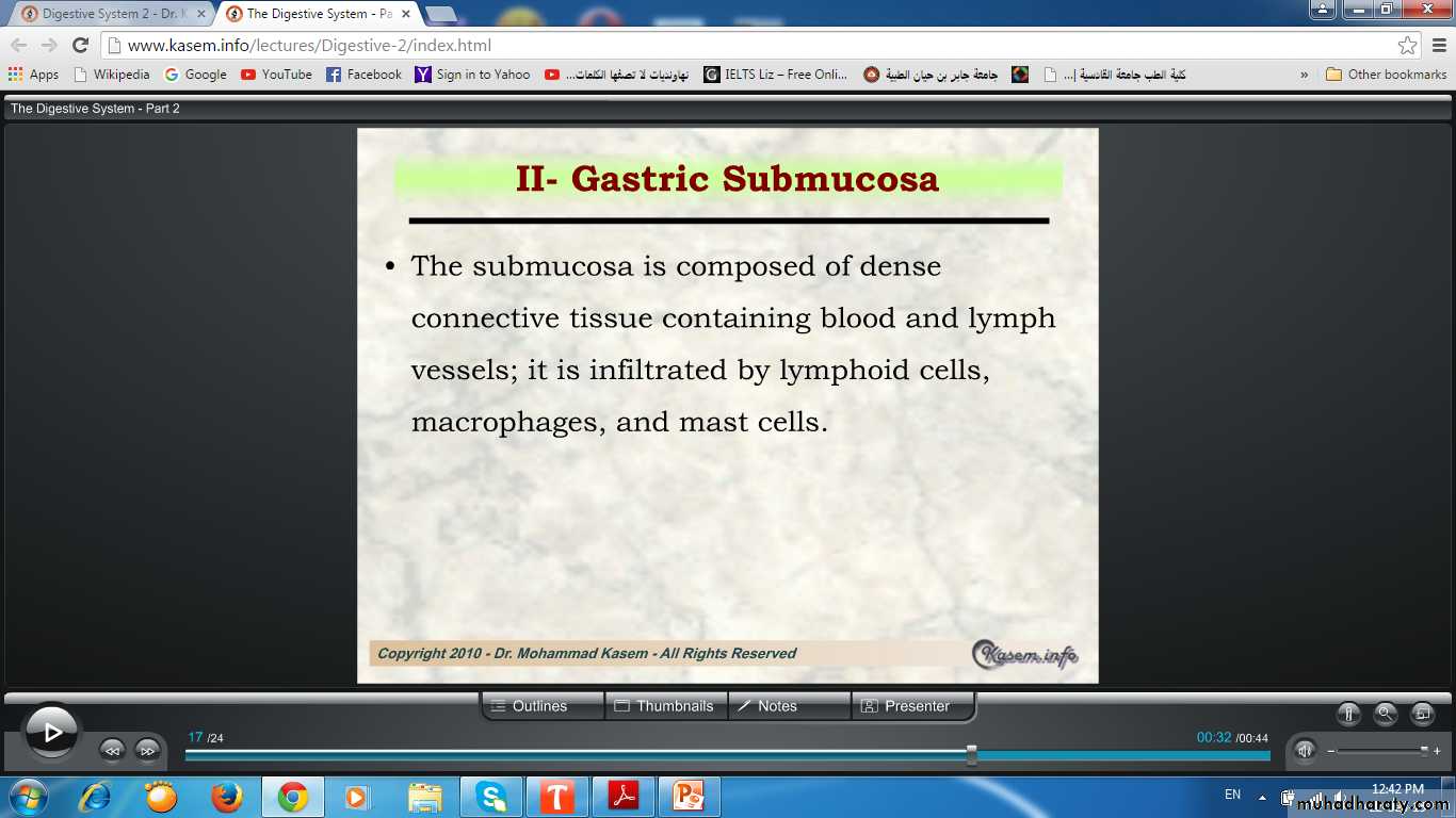 Submucosa: moderately dense CT with blood, nerve, lymph vessels & lymphoid follicles; rich in elastic fibers.