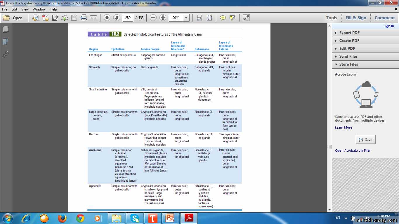 • Regional variations reflecting the changing functions.• Accessory organs