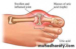 • Overproduction of uric acid and chronic gout are treated with allopurinol.
