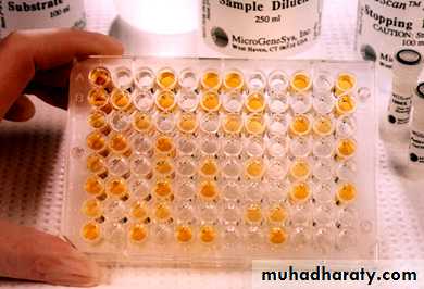 The ELISA is a common serological test for the presence of particular antigens or antibodies, there are two forms of this assay:1. Direct ELISA employs monoclonal antibodies to detect