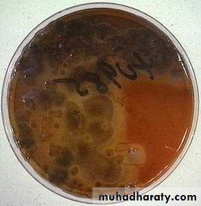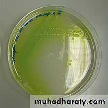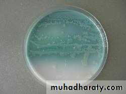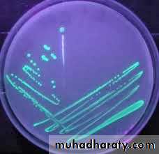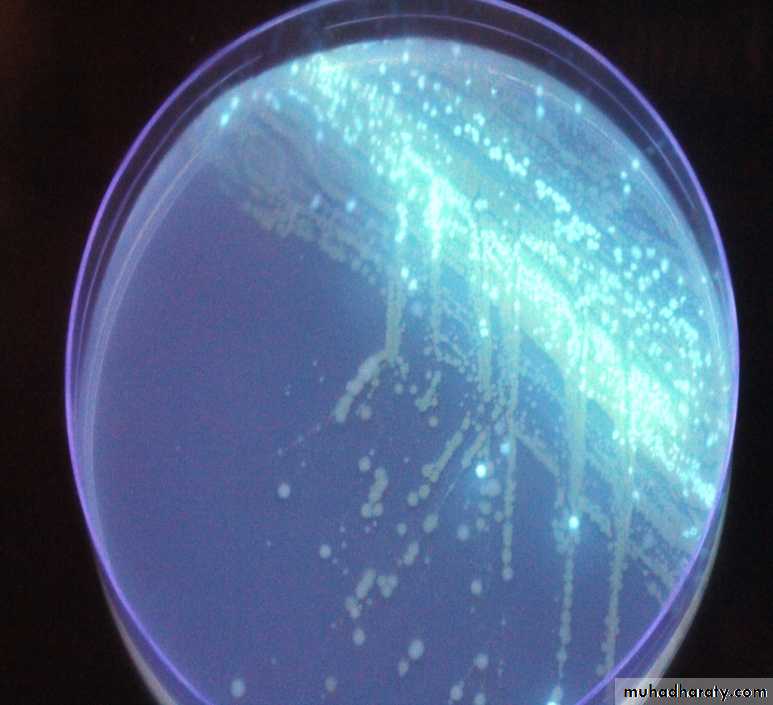 -Obligatory aerobes that can grow on different culture media like nutrient agar, blood agar , chocolate agar and others. The growth can occur at a wide range of temperatures (6-42 C) with the optimum temperature of 37 C.-They form smooth, flat and large colonies with rounded or irregular edges with a fluorescent color, sweet odor, and B-hemolysis on blood agar.