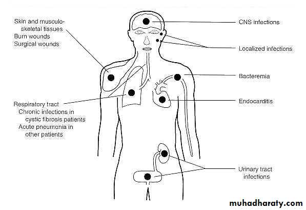 • It is one of the most important and frequent species encountered from the clinical specimens and associated with many human infections, also it is very important in causing nosocomial infections being responsible for about 25% of these infections. Pseudomonas aeroginosa are dangerous microorganism as they are resistant to many antibiotics.