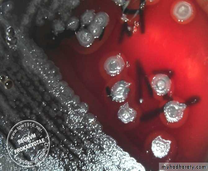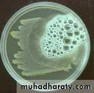 -Obligatory aerobes that can grow on different culture media like nutrient agar, blood agar , chocolate agar and others. The growth can occur at a wide range of temperatures (6-42 C) with the optimum temperature of 37 C.-They form smooth, flat and large colonies with rounded or irregular edges with a fluorescent color, sweet odor, and B-hemolysis on blood agar.