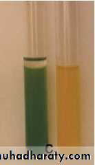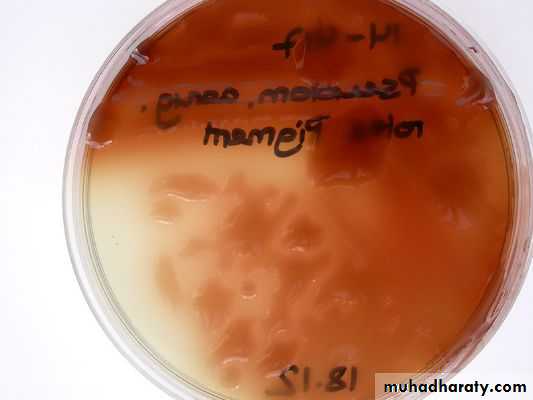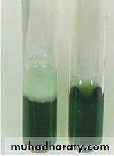 1-Pyocyanin (bluish pigment) ; 2-Pyoverdin (greenish pigment);