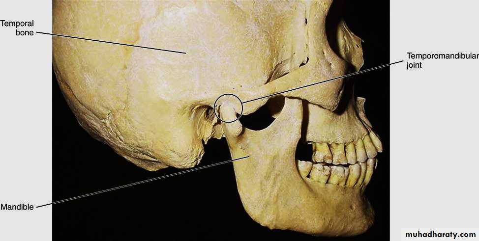 The temporomandibular jointIt is a bilateral synovial articulation between the upper temporal bone and the lower mandible; it is from these bones that its name is derived.