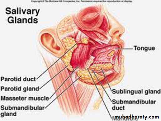 - 20% have accessory parotid gland and duct, usually overlying the masseter