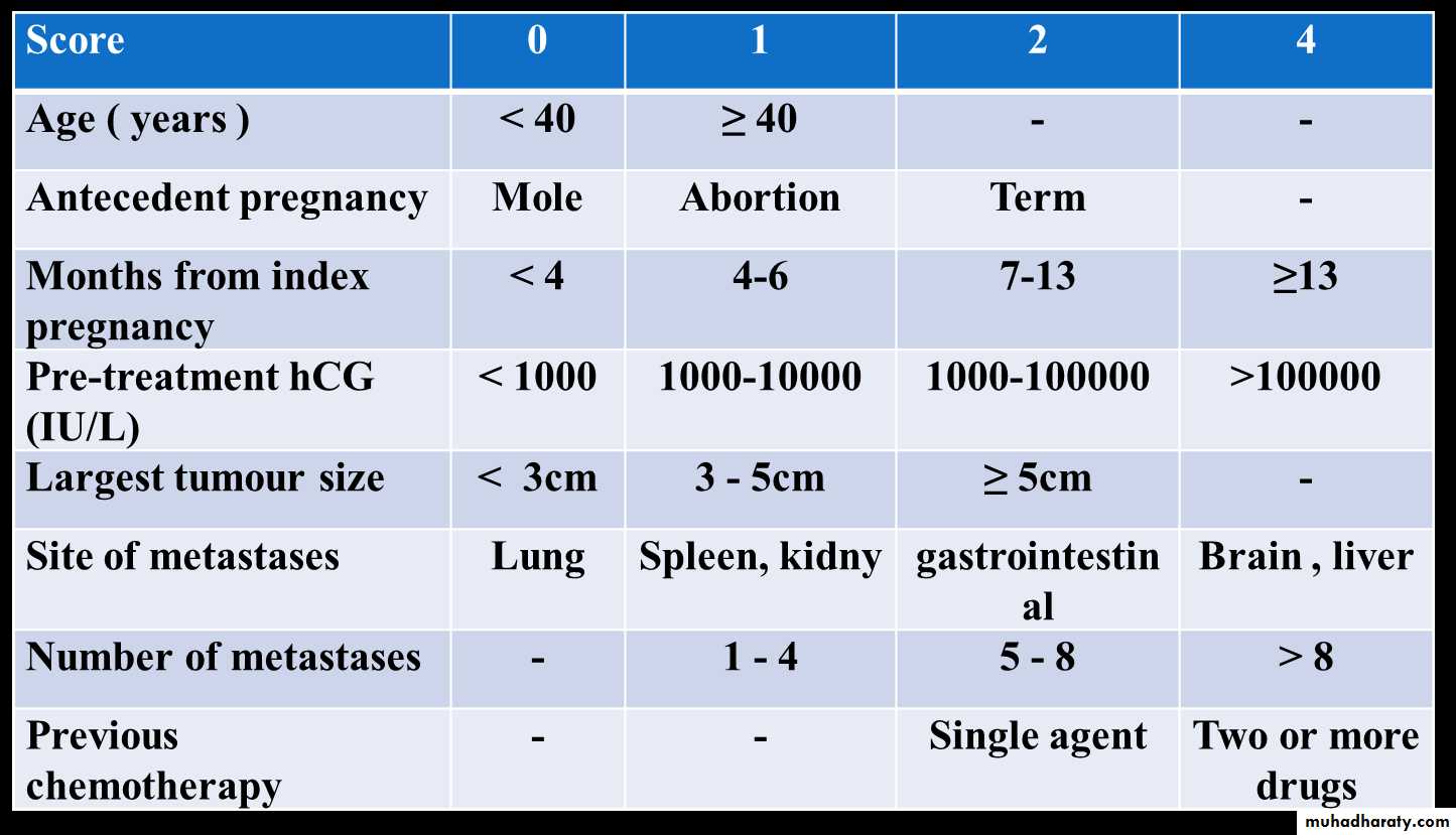 The international federation of gynaecology and obstetrics(FIGO) prognostic scoring system employed for assessing the intensity of the initial chemotherapy treatment.