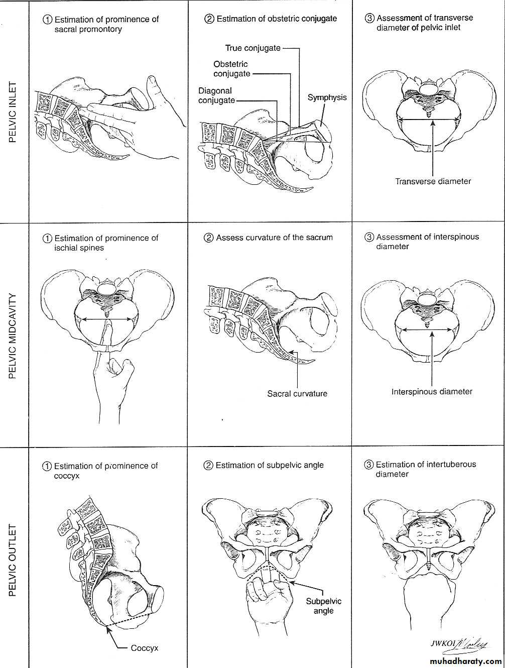 Bony pelvis can be measured by pelvimetry but it is not accurate and thus has been replaced by a clinical trial of labor in nullipara