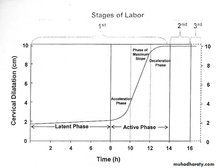 2))) Active phase: Describes the time between the end of the latent phase (3-4 cm dilatation) and full dilatation (10cm). ). It is also variable in length, usually lasting between 2 and 6 hours. Again it is usually shorter in multiparous women.