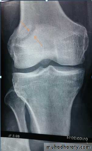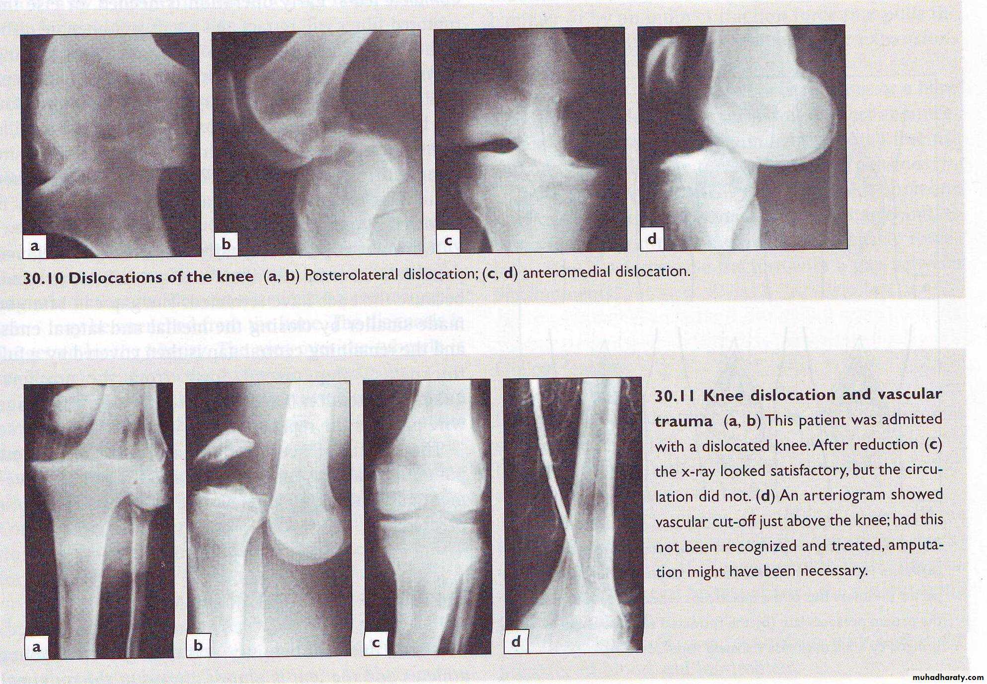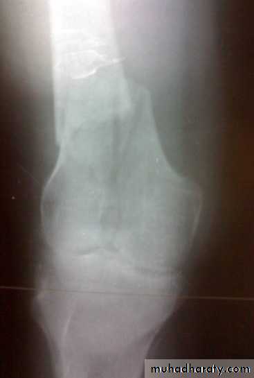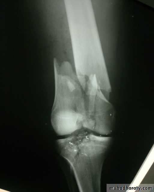 Osteoarthritis of knee joint; when the fracture extends into articular surface.