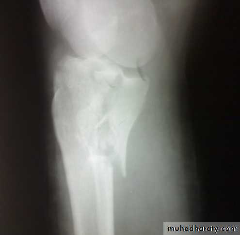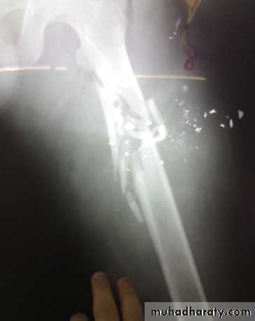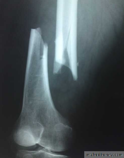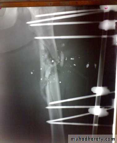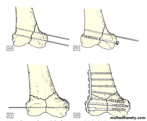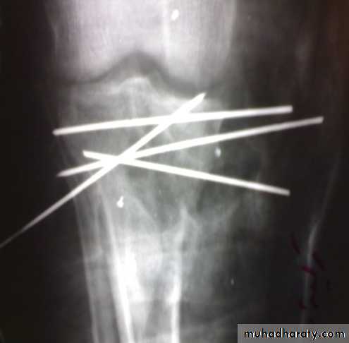 Knee extension is impossible.Initial fixation by tension wire with backslab.