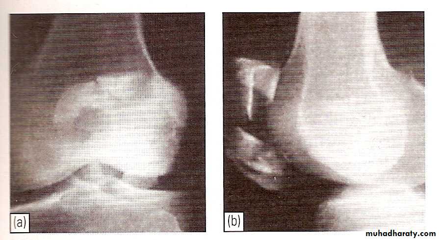 Aspirate hemarthrosis.Minimally displaced fractures: compression bandage, gradual exercise,then functional brace and gradual exercise after 3 wks.