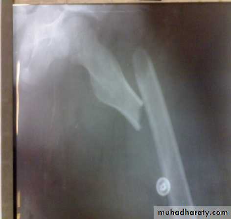 In children and adolescents- usually Salter-Harris II injury.Distal fragment tilted backward by gastrocnemius muscle.