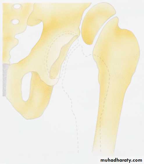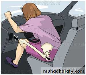 It occurs in road traffic accident when someone seated in truck or car is thrown foreword striking the knee against the dashboard . The femur is thrust backward and the femoral head is forced out of its socket . Often a piece of bone of the acetabulum is sheared off making it a fracture – dislocation