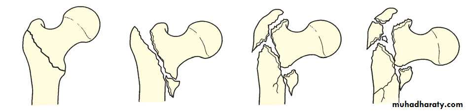 Classification : the most useful classification for intracapsular fracture neck of femur is that of (Garden classification) which based on the degree of displacement .