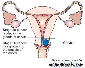1.Endometrial carcinoma which arise from the lining of the uterus.2.Sarcoma arise from the stroma of endometrium or from myometrium.
