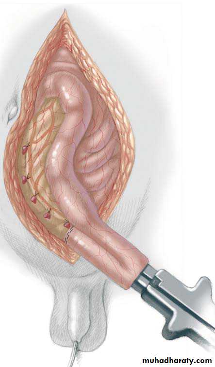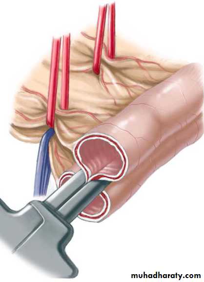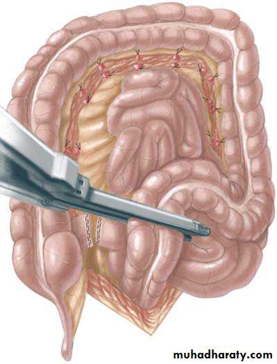 a-linear inverting anastomosis with transection(for side to side anastomosis).