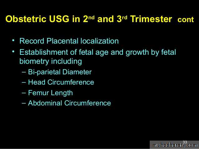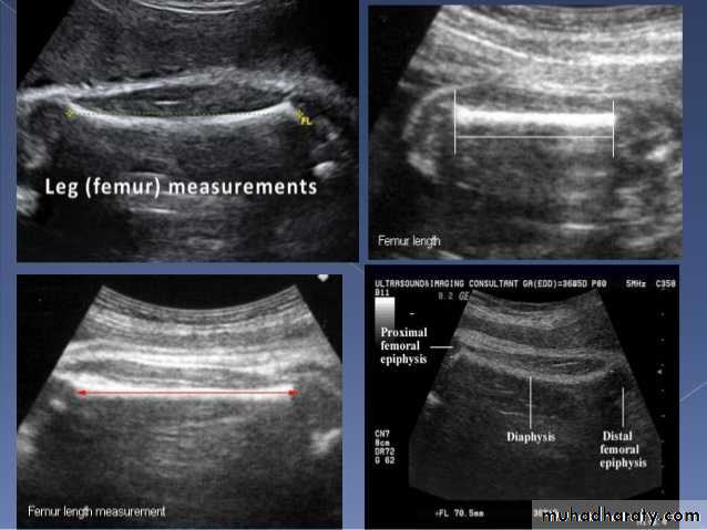 BPD together with head circumference (HC), abdominal circumference (AC), and femur length (FL) are computed to produce an estimate of fetal weight. In the second trimester this may be extrapolated to an estimate of gestational age and an estimated due date (EDD) .