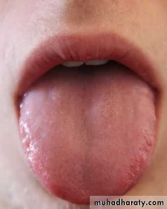 The tongue is a mass of striated muscle covered with mucous membrane . The muscles attach the tongue to the styloid process and the soft palate above and to the mandible and the hyoid bone below. The tongue is divided into right and left halves by a median fibrous septum .Mucous membrane of the Tongue :