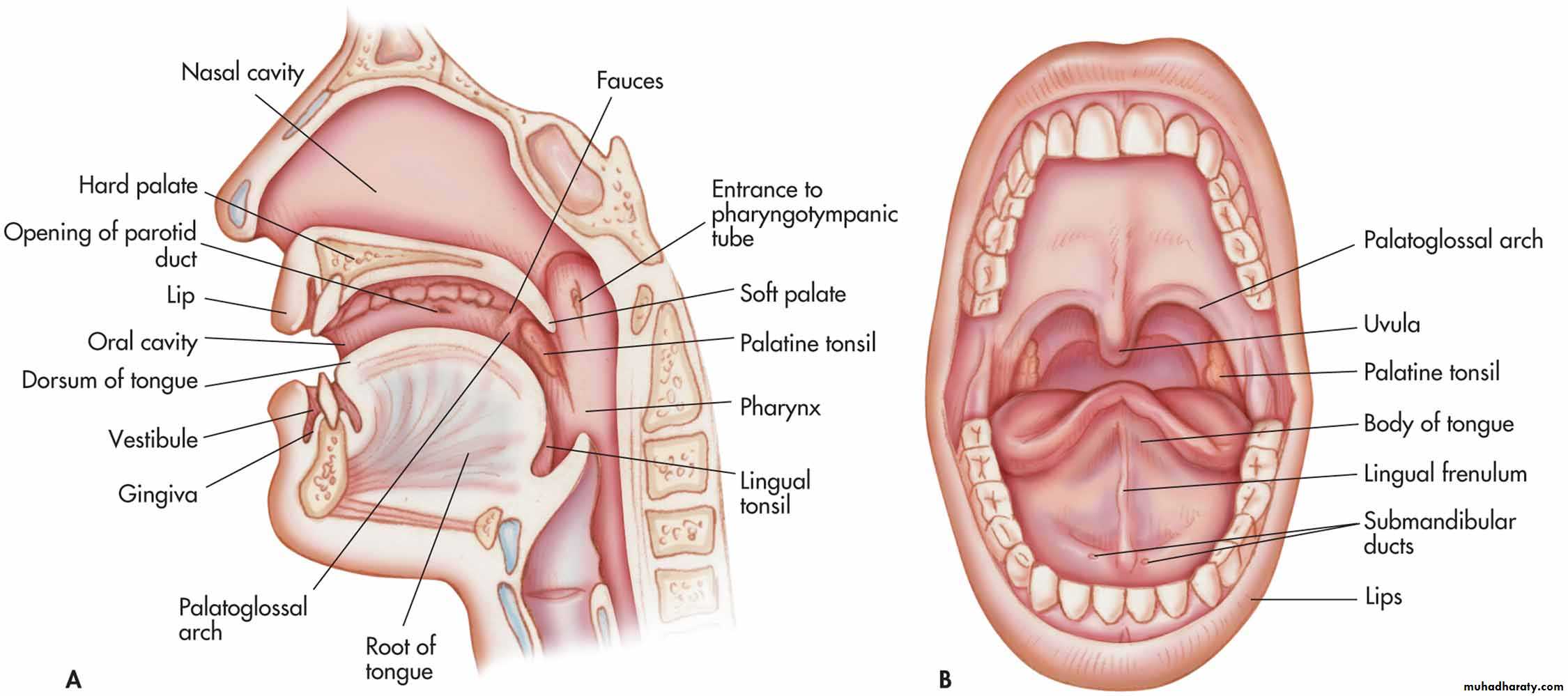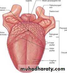 Roof : The greater palatine and nasopalatine nerves from the maxillary division of the trigeminal nerve.The Tongue