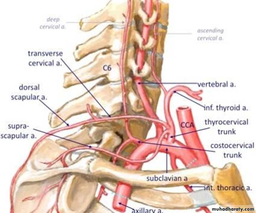 Branches in the neck: Spinal and muscular arteries