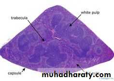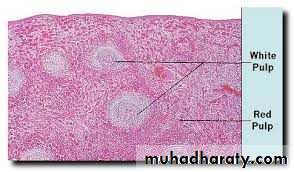 Composed of nodules, called HYPERLINK "https://en.wikipedia.org/wiki/White_pulp" \o "White pulp" Malpighian corpuscles. These are composed of: