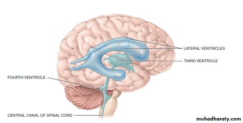 3.The fourth ventricle located in the hind brain and connected to the third ventricle by cerebral aqueduct. The fourth ventricle is continuous inferiorly with the central canal of the spinal cord.