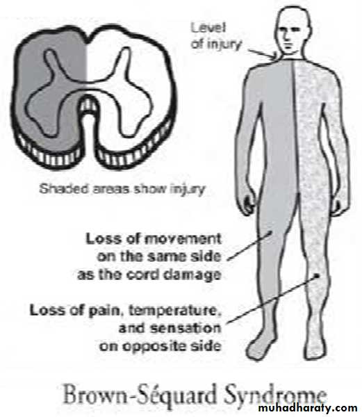 Spinal Cord TraumaComplete transection (severance) of the spinal cord causes immediate loss of motor control at and below the level of the injury. Transectio superior to segment C4 presents a threat of respiratory failure. Victims,also lose all sensation from the level of injury and below.In the early stage, victims exhibit a syndrome called spinal shock. The muscles below the level of injury