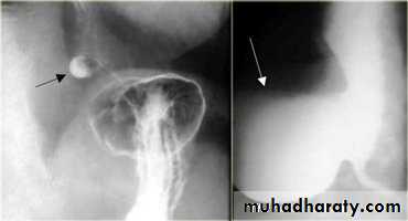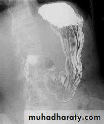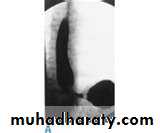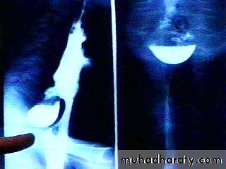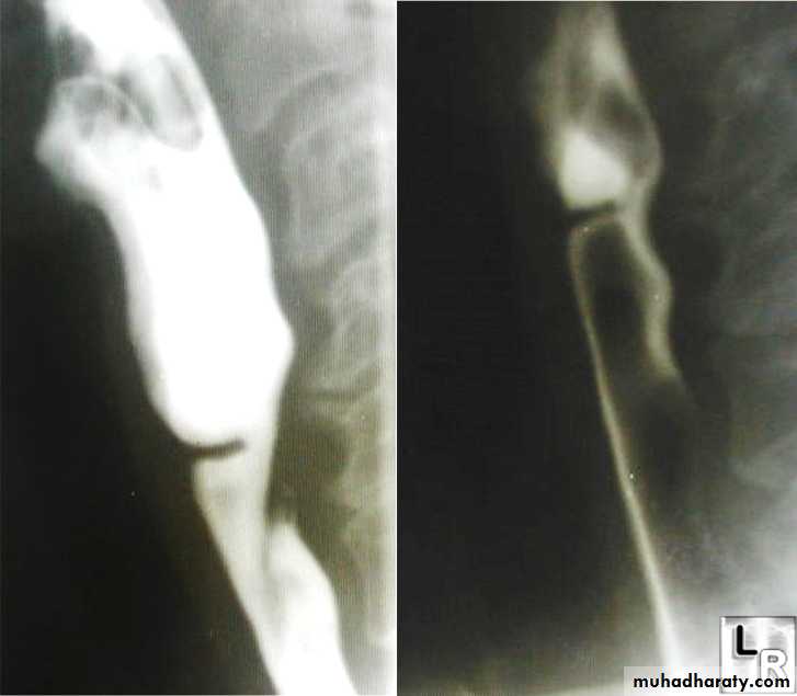 Lateral view Ba. Swallow show self like filling defect with proximal dilatation.