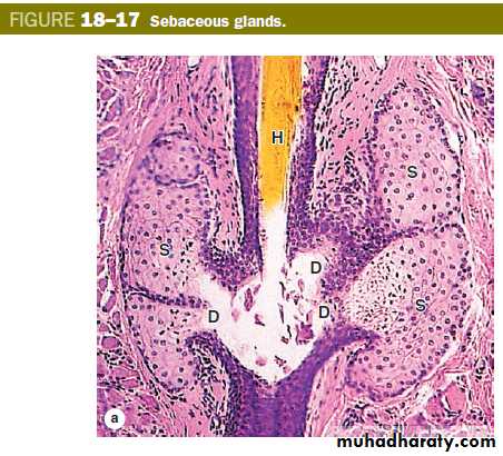 ■ Sebaceous glands produce sebum by terminal diffrentiation of