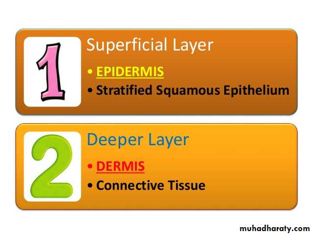 ■ The epidermis consists of keratinocytes that undergo a terminal differentiation process called keratinization in a series of steps that form distinct epidermal strata or layers: