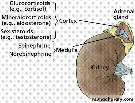 Adrenal gland:-1- Adrenal medulla.2- Adrenal cortex.