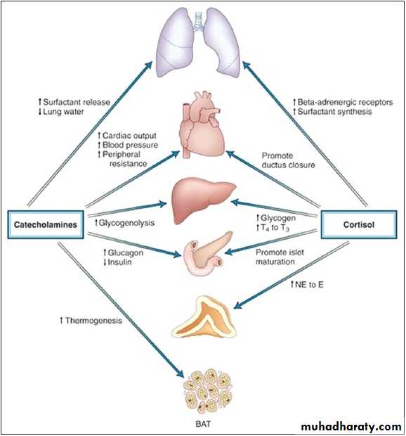 Catecholamines cause general physiological changes that prepare the body for physical activity (fight-or-flight response). Some typical effects are increases in heart rate, blood pressure, blood glucose levels, and a general reaction of the sympathetic nervous system. Some drugs, raise the levels of all the catecholamines.Adrenal cortex hormones