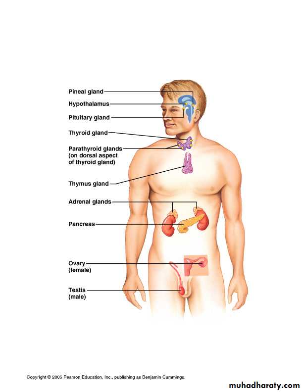 Controls many body functionsexerts control by releasing special chemical substances into the blood called hormones