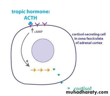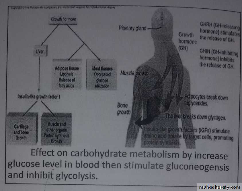2-Regulate production and secretion all adrinal cortix hormones.3-Transfer the unsaturated fatty acid from adipose tissues to blood plasma.4-Increase synthesis of ketone bodies. 5-Decrease synthesis of urea from amino acid.6-Delay the loss of adrinal cortix hormones in liver.