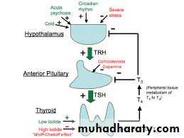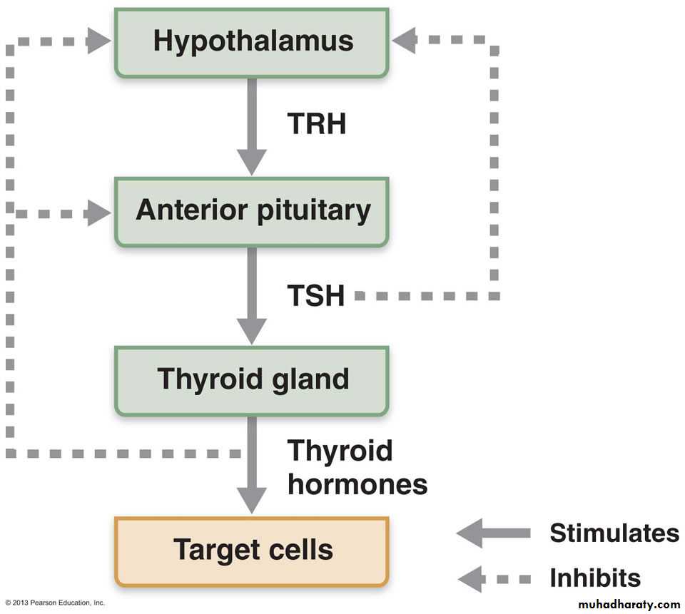 The main function of TSH:- Stimulate the thyroid hormone (T3,T4).- Control of iodide concentration and converted it to organic compound by binding with thyroglobulin then it was hydrolyze.- Increase the concentration and synthesis of protein, phospholipid and nuclic acid.- Lipolysis the nutrient lipid in adipose tissues. TRH TSH T3,T4hypothalamus anterial pituitary target hormone