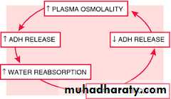 One of the most important roles of ADH is to regulate the body's retention of water in the body; it is released when the body is dehydrated and causes the kidneys to conserve water, thus concentrating the urine and reducing urine volume. At high concentrations, it also raises blood pressure by inducing moderate vasoconstriction.It also increases peripheral vascular resistance, which in turn increases arterial blood pressure. It plays a key role in homeostasis, by the regulation of water, glucose, and salts in the blood.