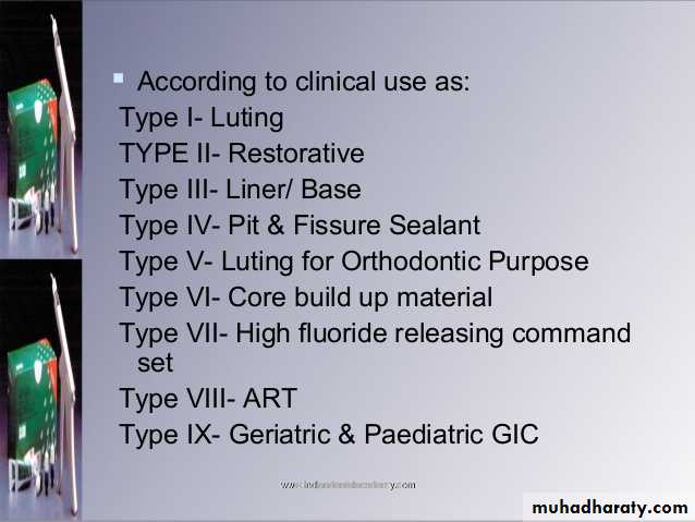1.Water settable glass ionomer cement :-Liquid is delivered in a freeze dried form ,which is incorporated into the powder.