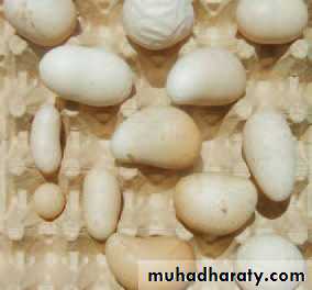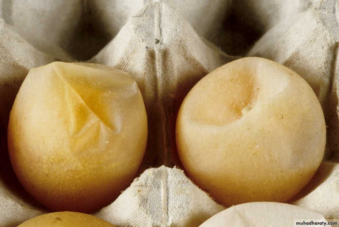 Reproductive disease such as EDS causes a decrease in egg production, soft, hypopigmented/pale, rough, misshapen or thin shelled eggs, decreased hatchability, flabby yolks, thin albumin and also hypoplasia/atrophy of the reproductive tract in female birds. Egg quality recovers within 3 weeks but production may not.
