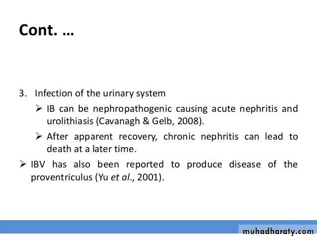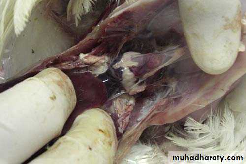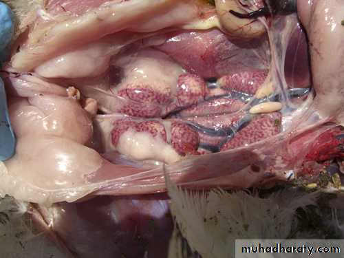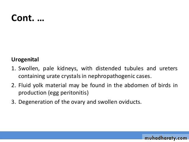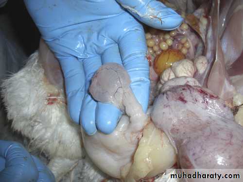 The D388 strain has a predilection to oviducts and kidneys causing cystic oviducts with watery contents leading to dilatation.