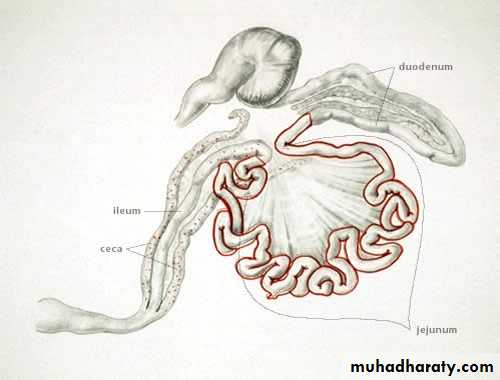 Coccidiosis occurs most frequently in young birds. Old birds are generally immune as a result of prior infection. Severe damage to the ceca and small intestine accompany the development of the coccidia. Broilers and layers are more commonly infected, but broiler breeders and turkey and pheasant poults are also affected.