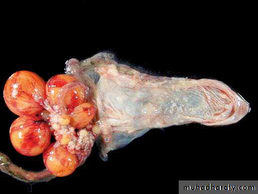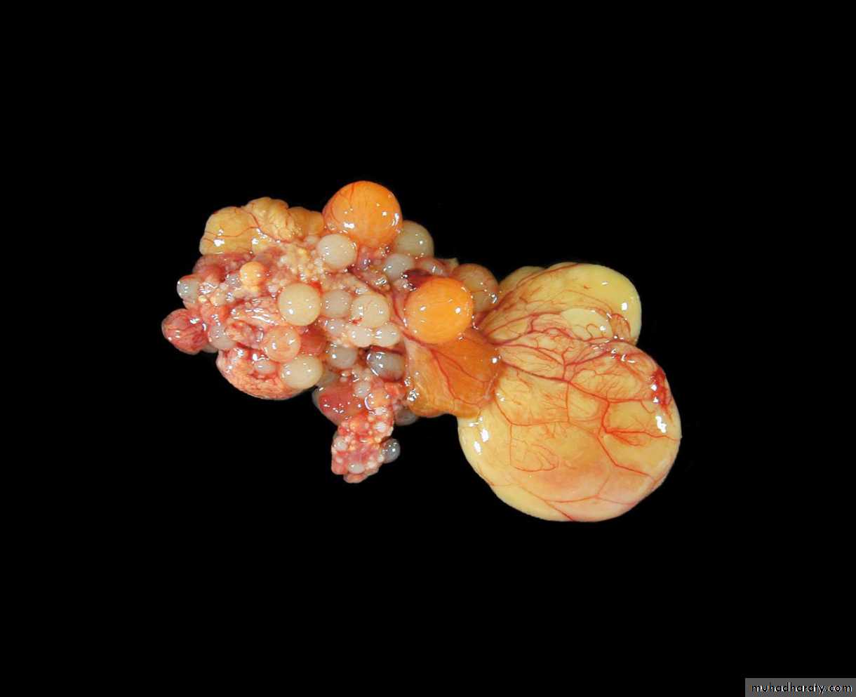 Persistent right oviduct: in some cases the right-side ovary and oviduct may not disappear but accumulate clear liquid which forms a cyst on the right side of the cloaca.