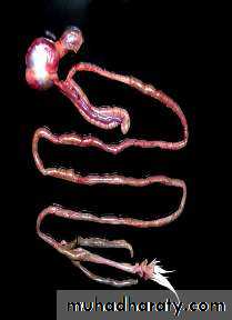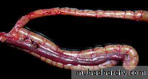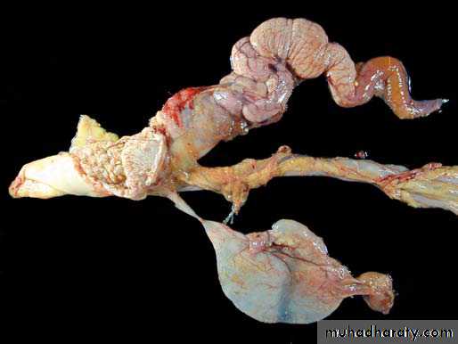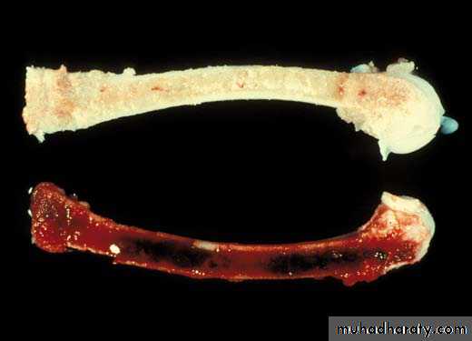 Fig. 13 Oviduct hypoplasia. The top part of the image shows a normal oviduct, while underneath is a shorter oviduct. Here it is impossible to distinguish the different regions.Digestive system