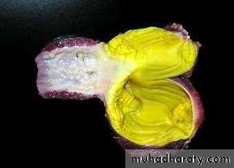 Reproductive tract in maleTestes are homogeneous on capsular and cut surfaces. Ovaries should be free of inflammation. Sterile egg yolk peritonitis is a common finding in “spent” layers.