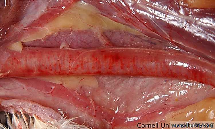 Gumboro disease related diseases such as inclusion body hepatitis are also more frequent in these birds. In broilers this form of the disease results in bad performance with lower weight gains and higher feed conversion ratios.